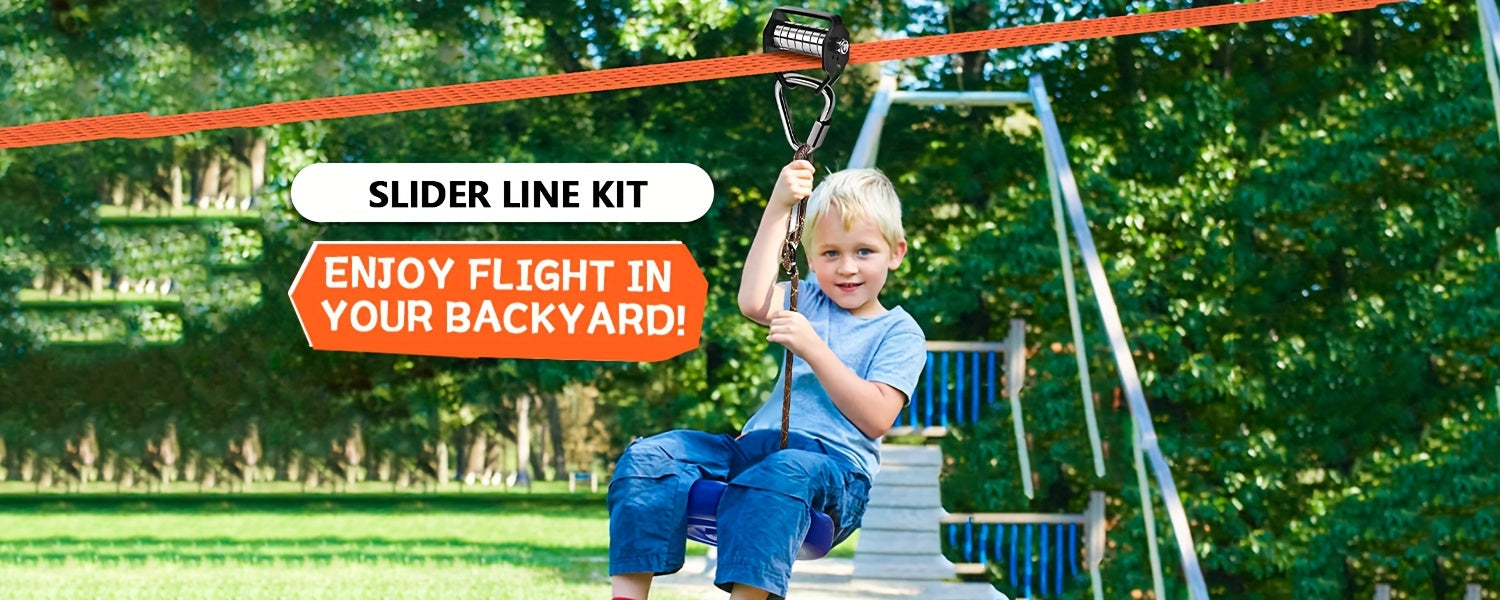 Trötta barn som fastnar framför skärmar? Vuxna som vill ha en rolig utmaning utomhus? Med Zipline Set i Polyester får hela familjen uppleva fart, skratt och spänning – direkt i trädgården eller på landet. Ett perfekt sätt att skapa minnesvärda stunder och få alla att röra på sig.