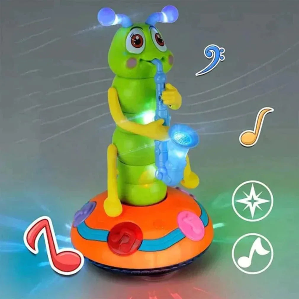 Förutom att erbjuda underhållning har denna leksak många fördelar för små barns utveckling. Larven dansar till glada melodier, vilket stimulerar sinnena och hjälper till att utveckla rytm och melodi. Dessutom har leksaken interaktiva knappar och texturer som hjälper till att utveckla barnens taktila och finmotoriska färdigheter. Larvens klara färger och mönster främjar den visuella uppfattningsförmågan och stimulerar barnens fantasi när de utforskar sin omgivning.