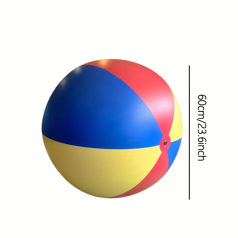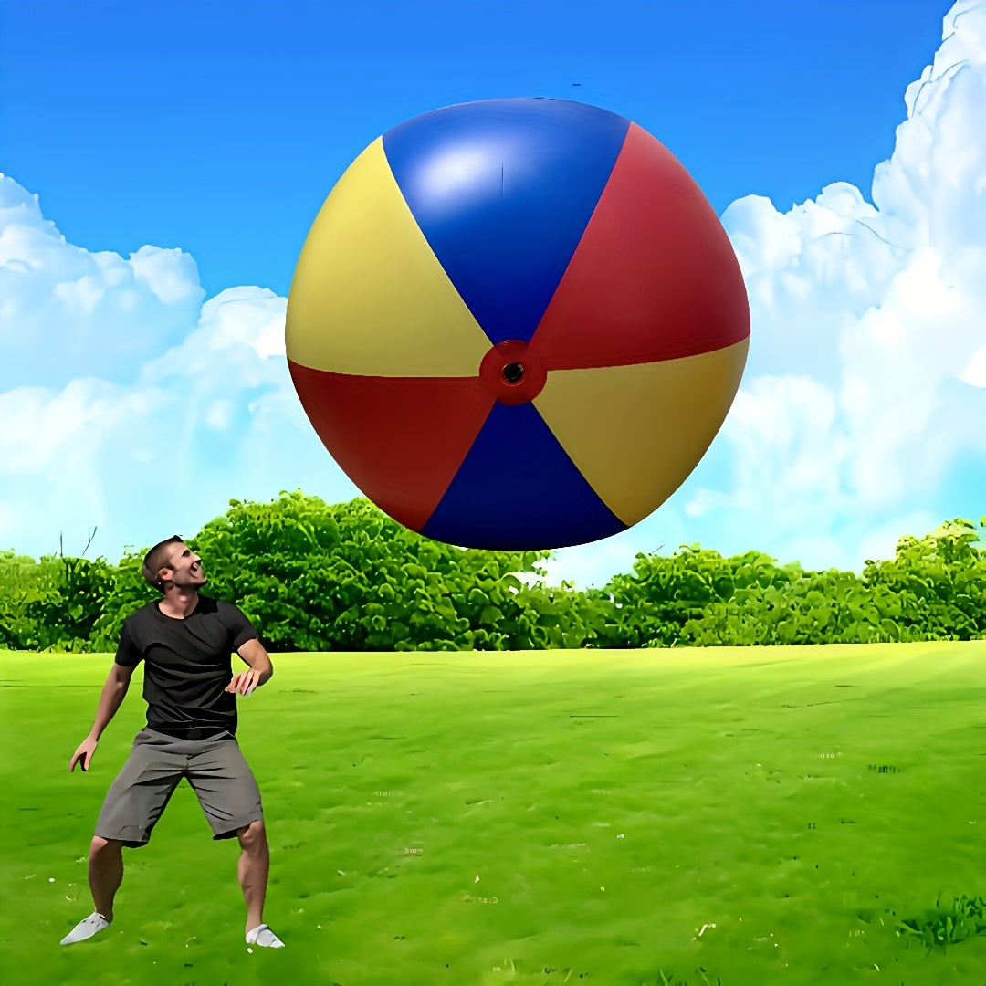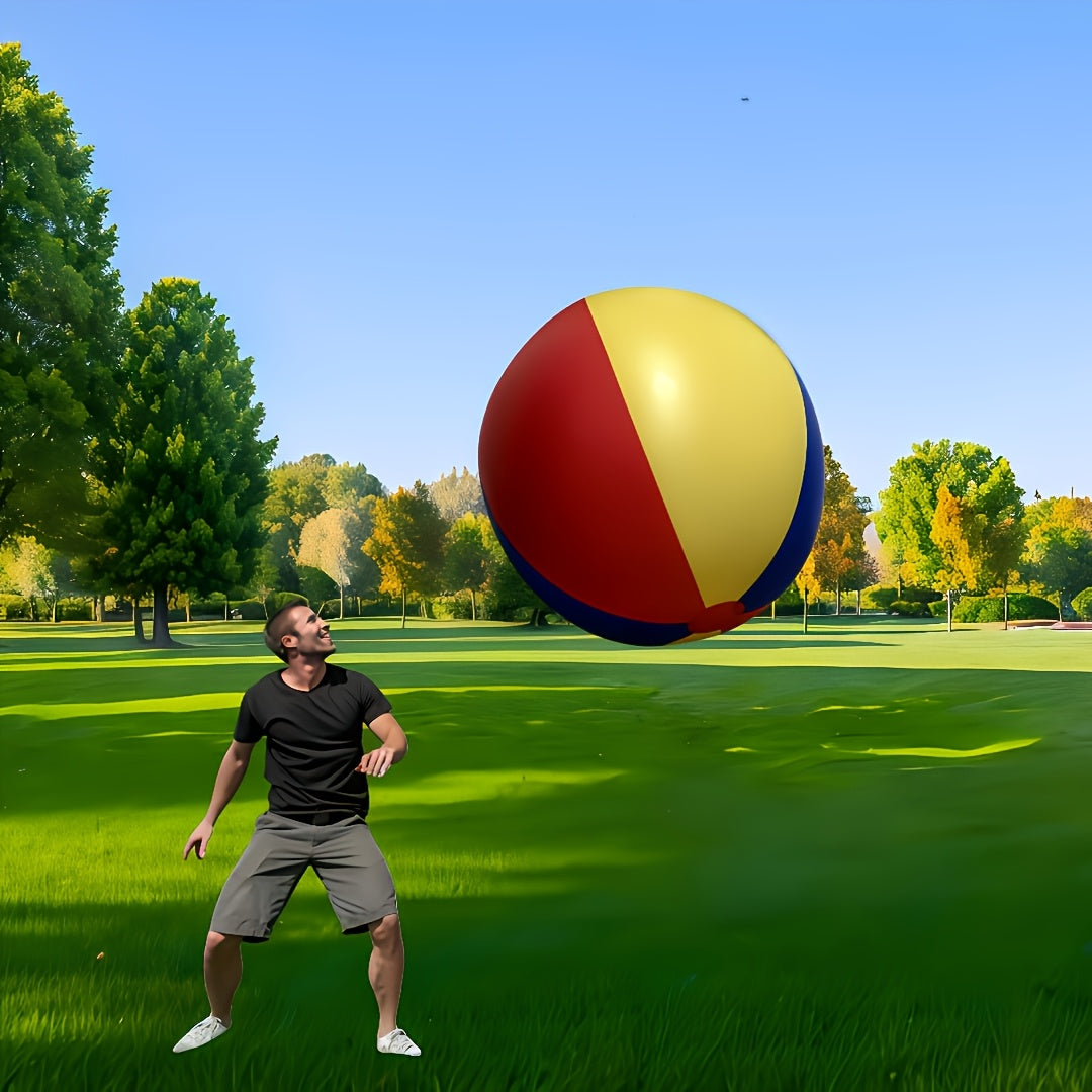 Gör stranden, trädgården eller parken till din egen lekplats med vår jättestora uppblåsbara boll i rött, gult och blått. Perfekt för barn och vuxna som vill leka, tävla och skratta tillsammans.