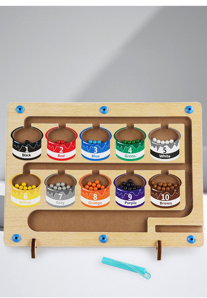 Lärande med Färg och Siffror: Den Magnetic Color and Number Maze är utformad för att introducera barn till grundläggande färger och siffror på ett interaktivt och engagerande sätt. Genom att kombinera magnetiska färgkuber med olika siffror på en magnetisk spelbräda, kommer barnen att ha roligt med att matcha rätt färger och siffror med varandra.