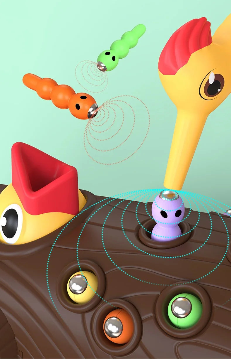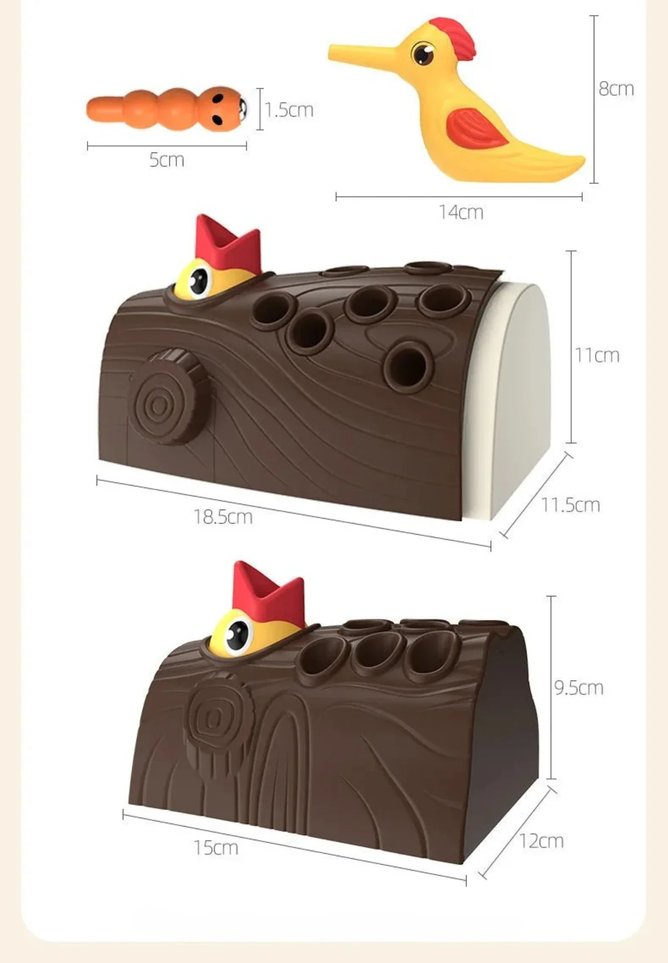 Barn älskar att härma djur och utforska världen genom lek. Med Montessori Hackspettsleken kan ditt barn bli en liten fågel som fångar maskar med hjälp av en magnetisk hackspett – en lek som är både rolig och utvecklande.