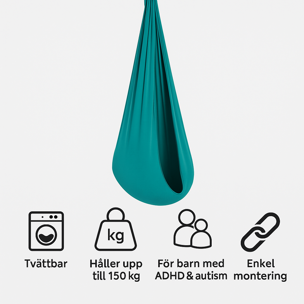 Har ditt barn svårt att komma ner i varv, koncentrera sig eller hitta ro efter en lång dag? För många barn med ADHD, autism eller sensoriska behov kan det kännas extra svårt att hantera alla intryck. Med den sensoriska hänggungan får ditt barn en egen trygg plats – en kramande kokong som ger ro, glädje och balans.