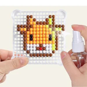 Till skillnad från de klassiska pärlorna kan barnen helt enkelt koppla ihop dessa pärlor själva. Detta beror på att det inte behövs någon värme inblandad. Spraya bara lite vatten på konstverket så håller pärlorna ihop av sig själva. Det är mycket säkrare och enklare och du kan t.ex. läsa en bok medan dina barn pysslar på egen hand.